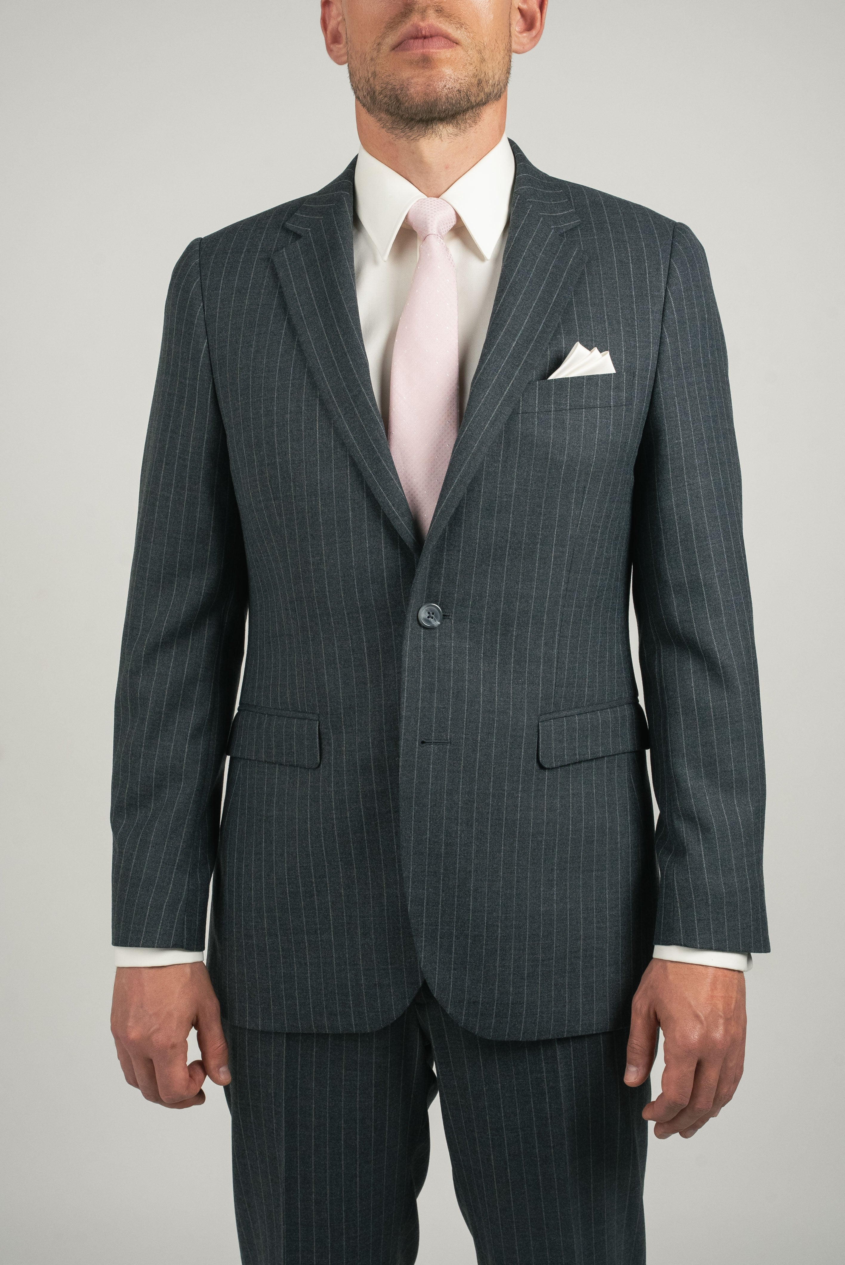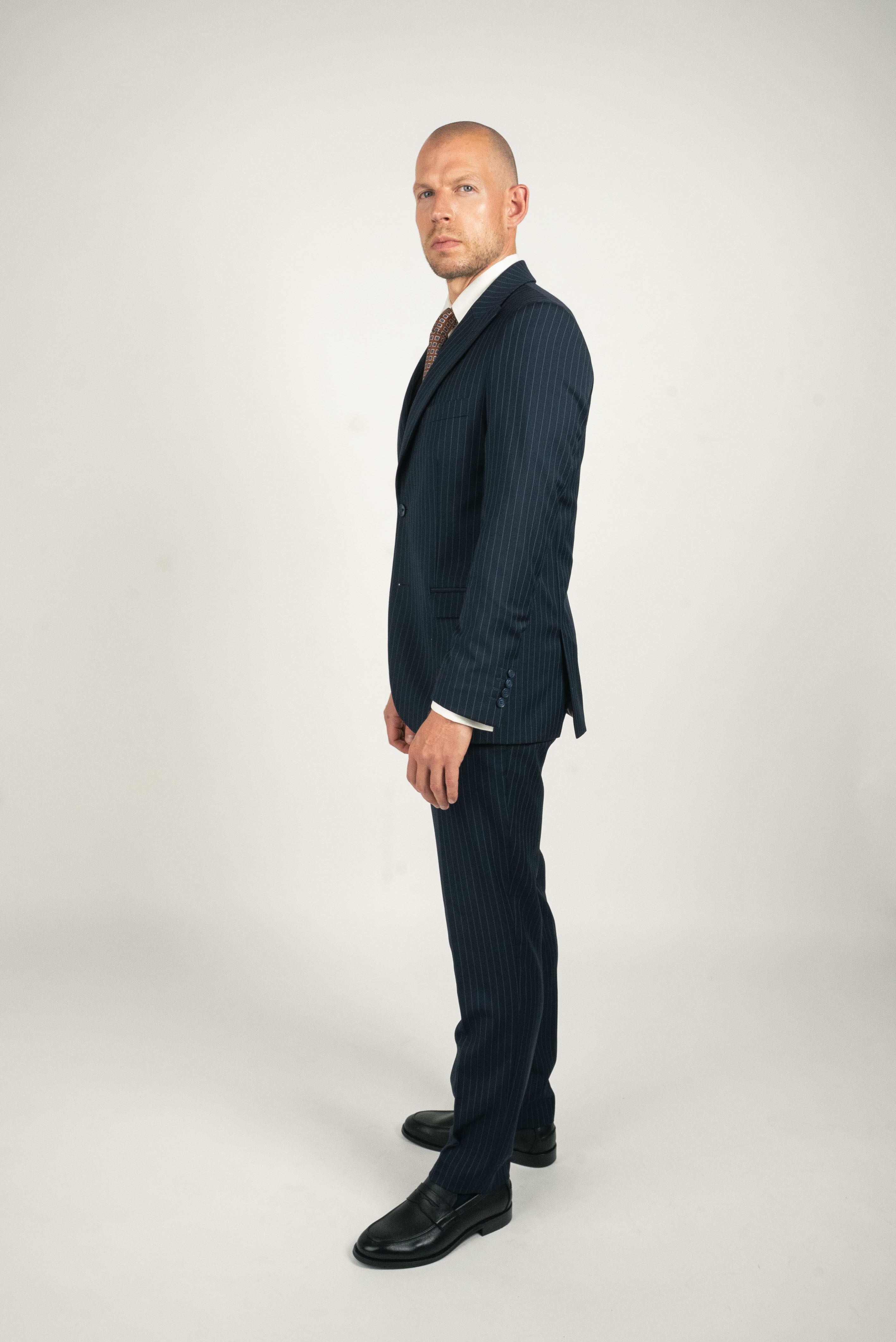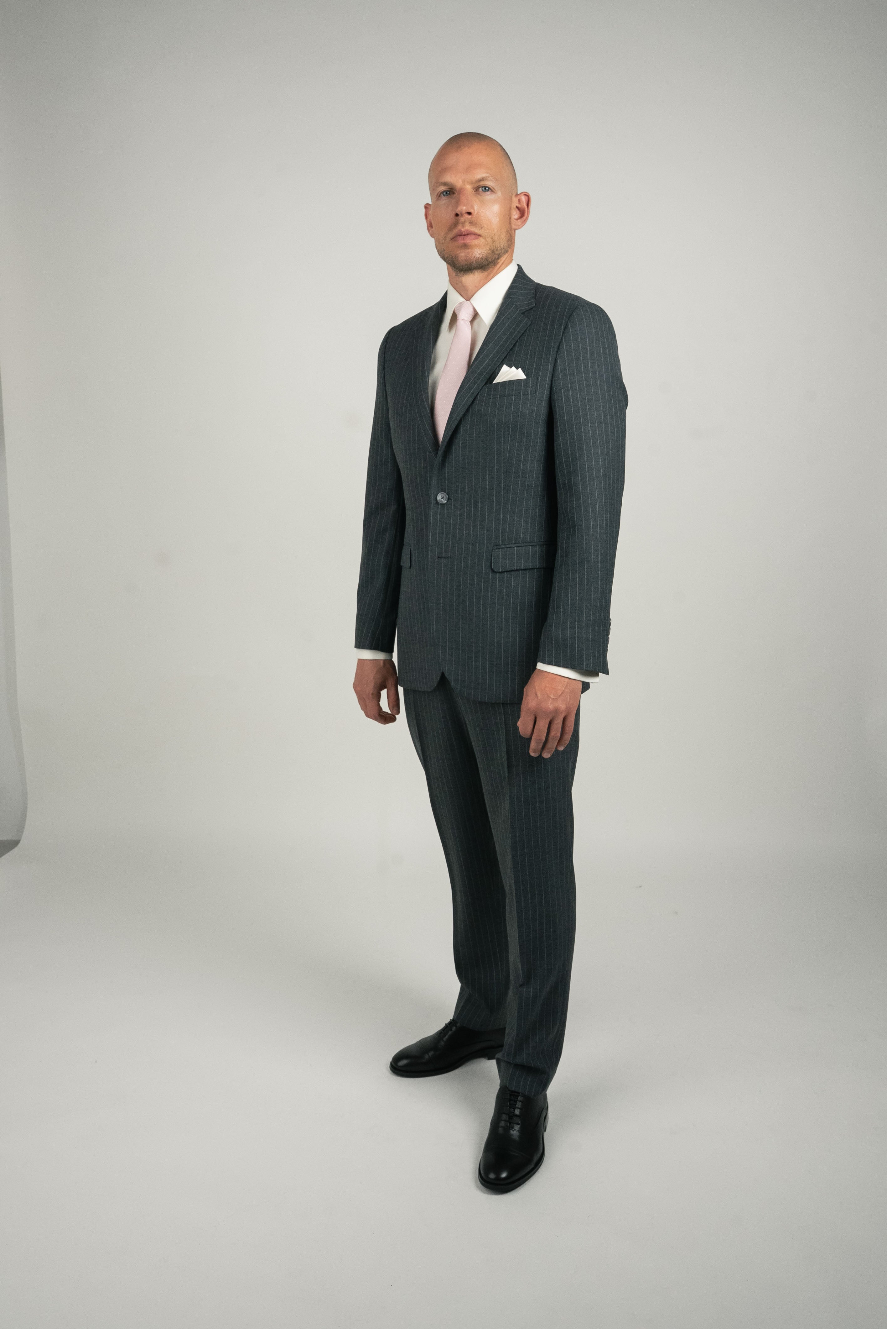 Et nålestribet jakkesæt er et ikonisk valg, der udstråler både selvsikkerhed og klasse. De fine, lodrette striber skaber et skarpt, elegant look, der visuelt forlænget silhuetten og giver et sofistikeret udtryk. Et nålestribet jakkesæt passer perfekt til forretningsmøder, formelle arrangementer, eller når du ønsker at skille dig ud med stil til en særlig begivenhed. Det kan både tones op med slips og klassiske sko eller bruges mere afslappet med en enkel skjorte. Vælg et nålestribet jakkesæt, når du vil kombinere tradition og modernitet i ét stilsikkert look.