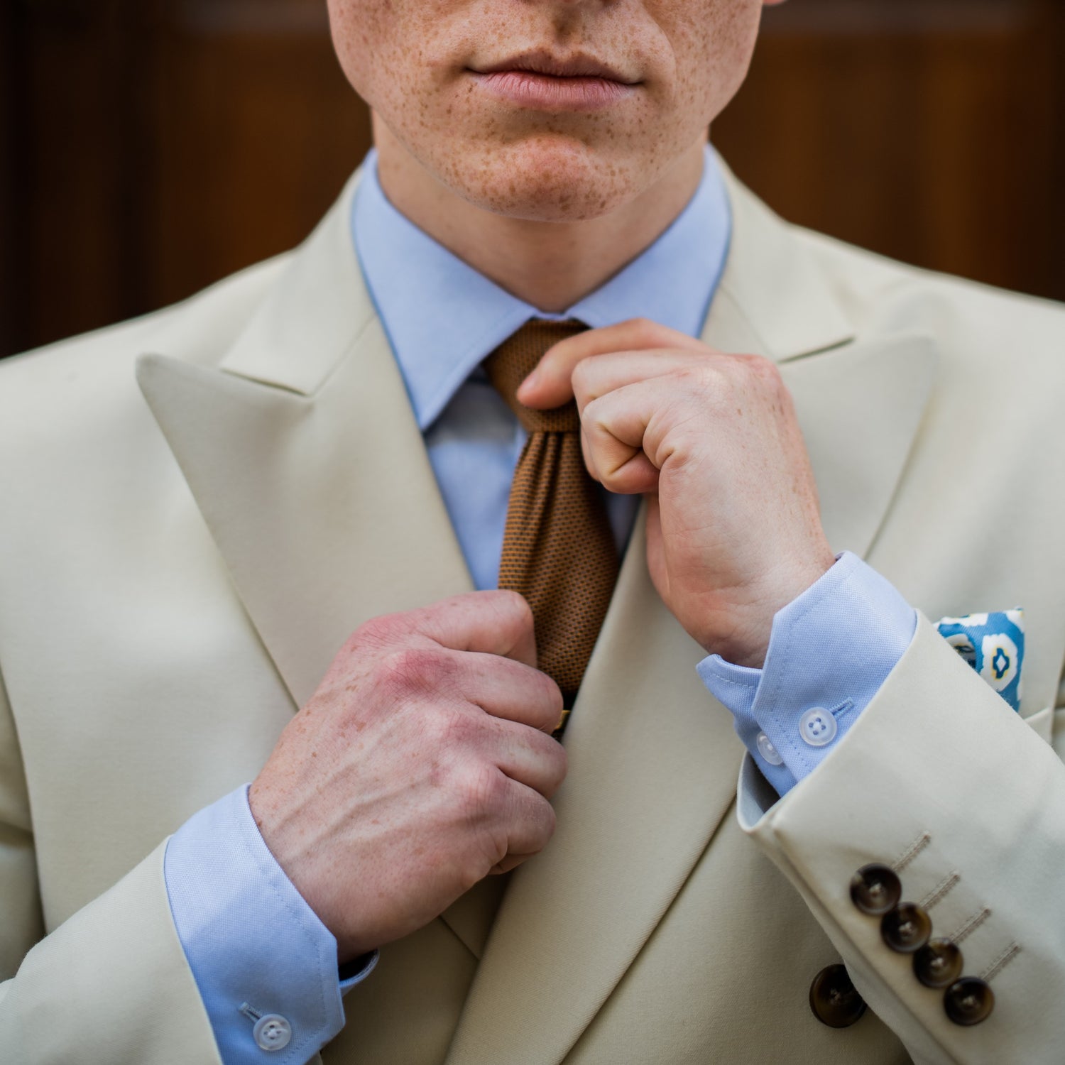Ved din aftalte tid i vores showroom står vi klar med mange års erfaring til at guide dig til det perfekte jakkesæt – uanset om det er til hverdag, bryllup eller anden anledning.
