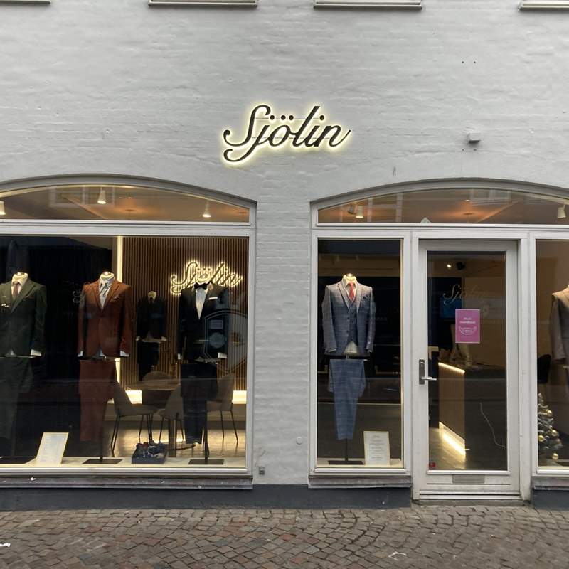 I Klostergade 16 midt i Smilets By finder du Sjölin Aarhus – Sjölins første showroom, hvor du altid er velkommen, så vi i fællesskab kan skabe dit næste perfekte jakkesæt.