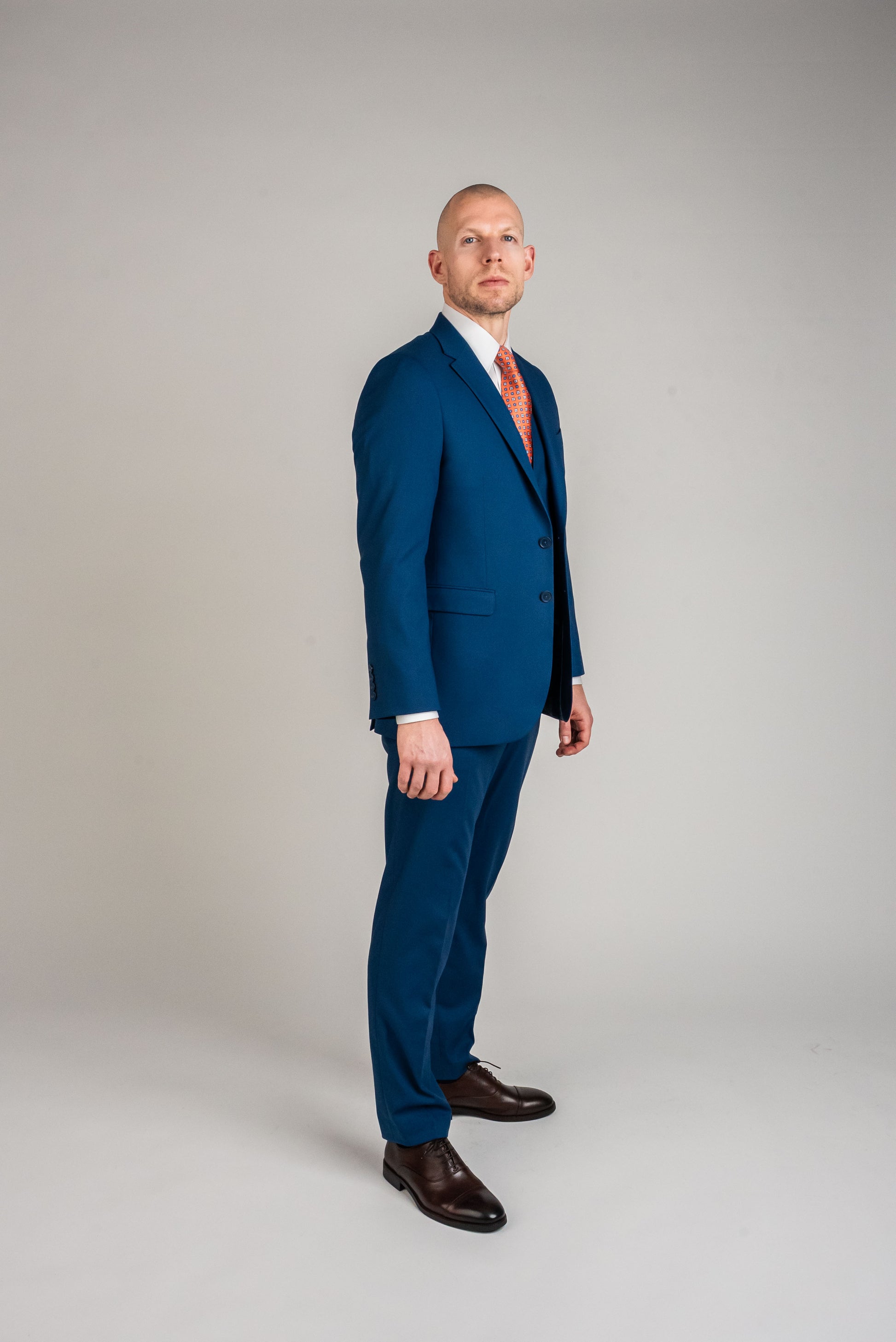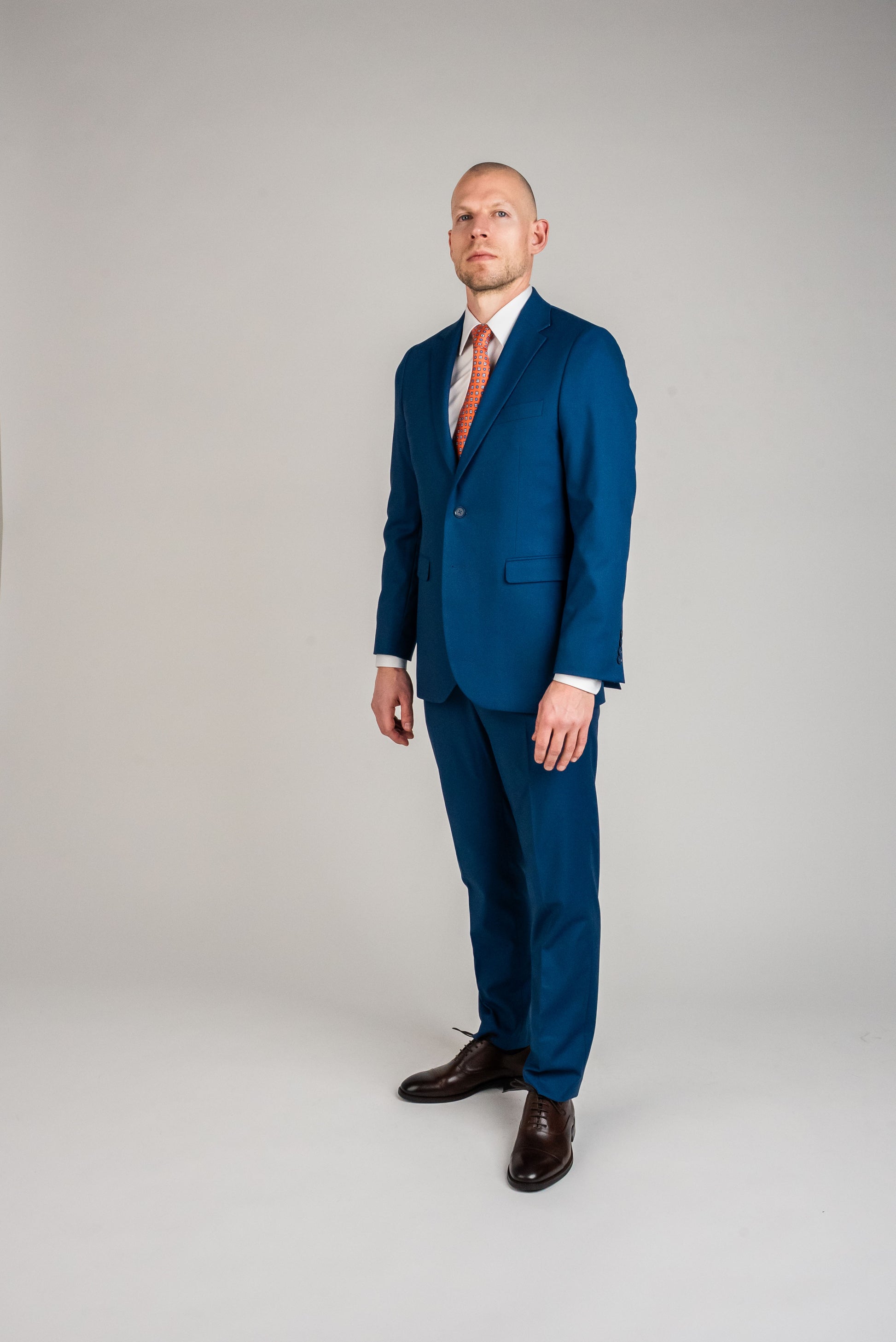 Den blå farve tilføjer et tidløst og sofistikeret touch, der passer perfekt til enhver lejlighed. Uanset om det er til en festlig aften ude eller en vigtig forretningsmøde, vil dette jakkesæt give dig det selvtillidsboost, du har brug for.