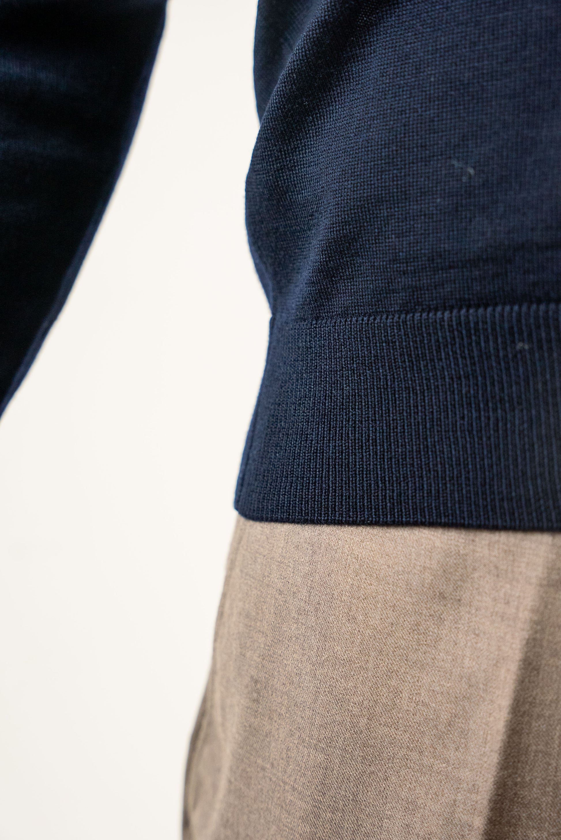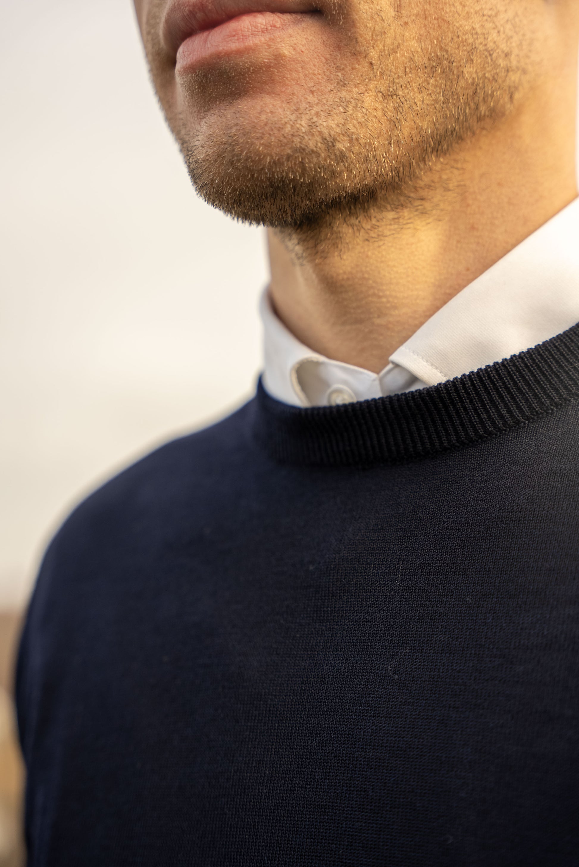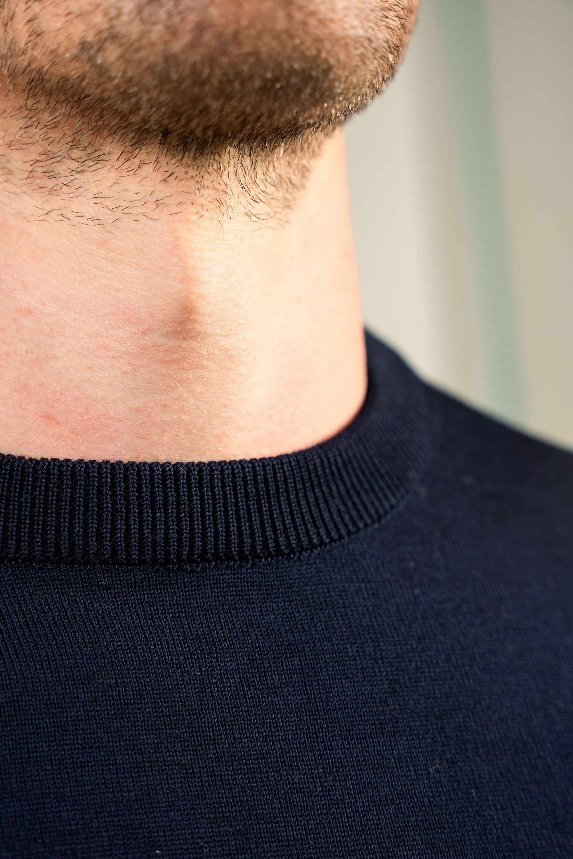 Den bløde, strikkede kvalitet sikrer høj komfort og et flot fald, mens pasformen giver et skarpt, men afslappet look. Brug trøjen over en skjorte til kontoret, under en blazer for et sofistikeret lag-på-lag look, eller alene med et par chinos for en mere afslappet stil.