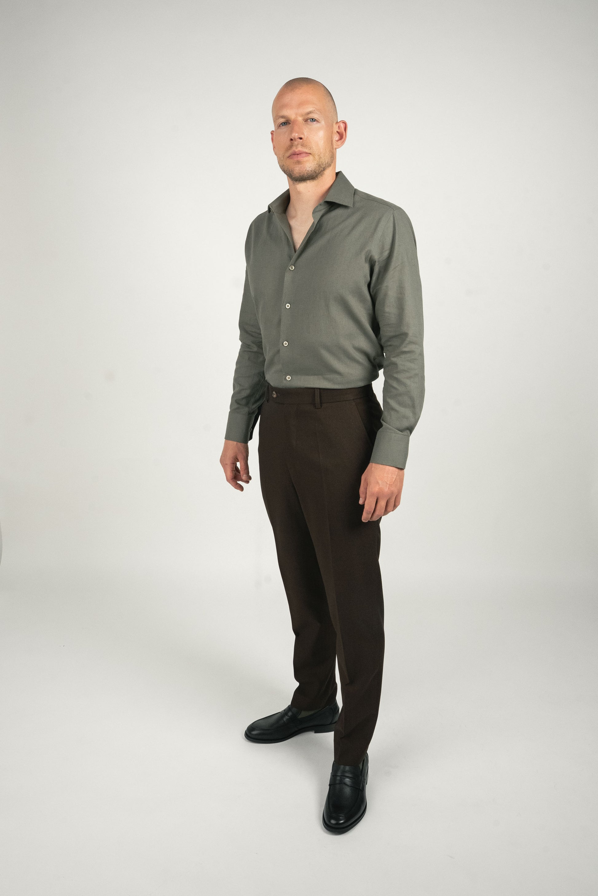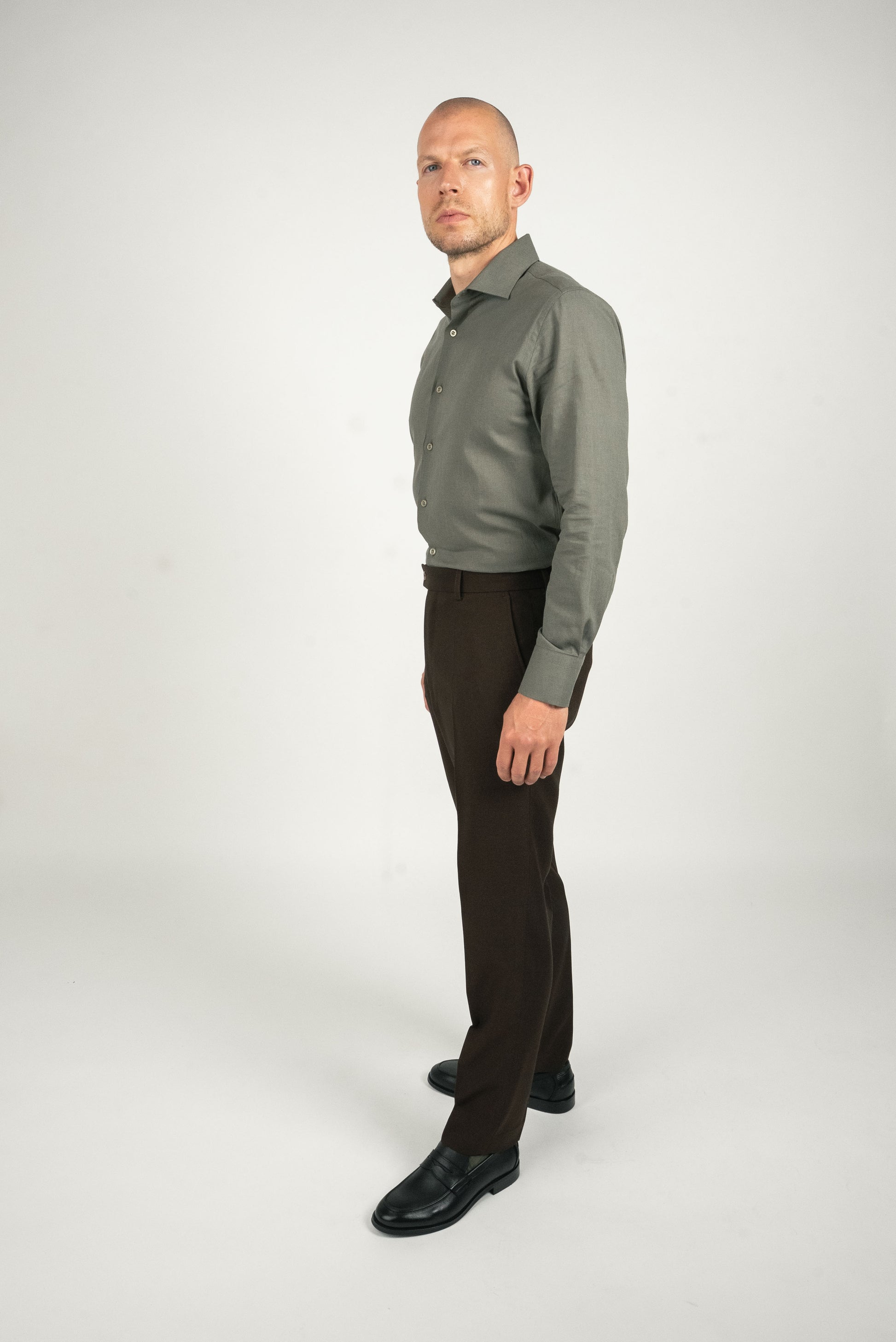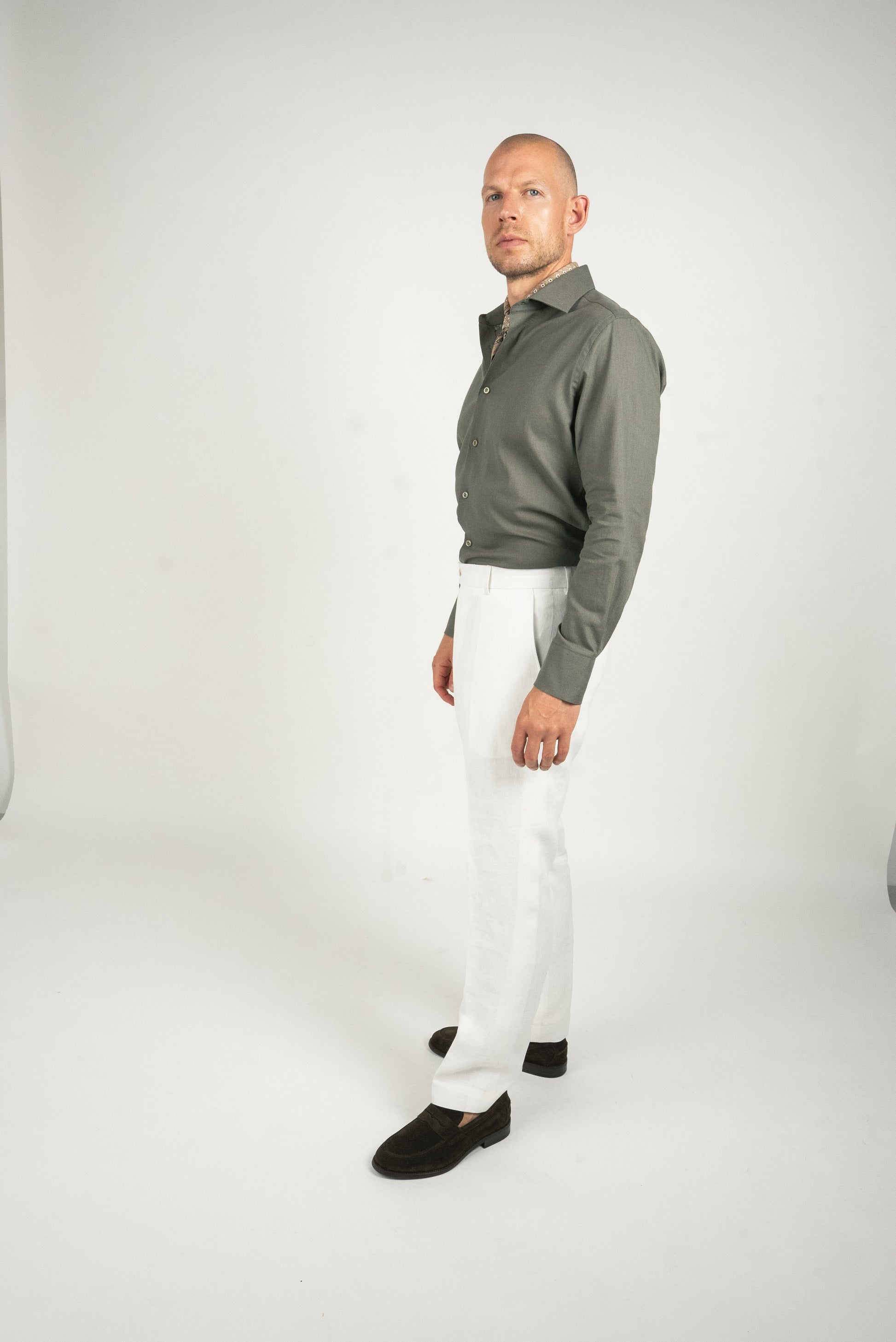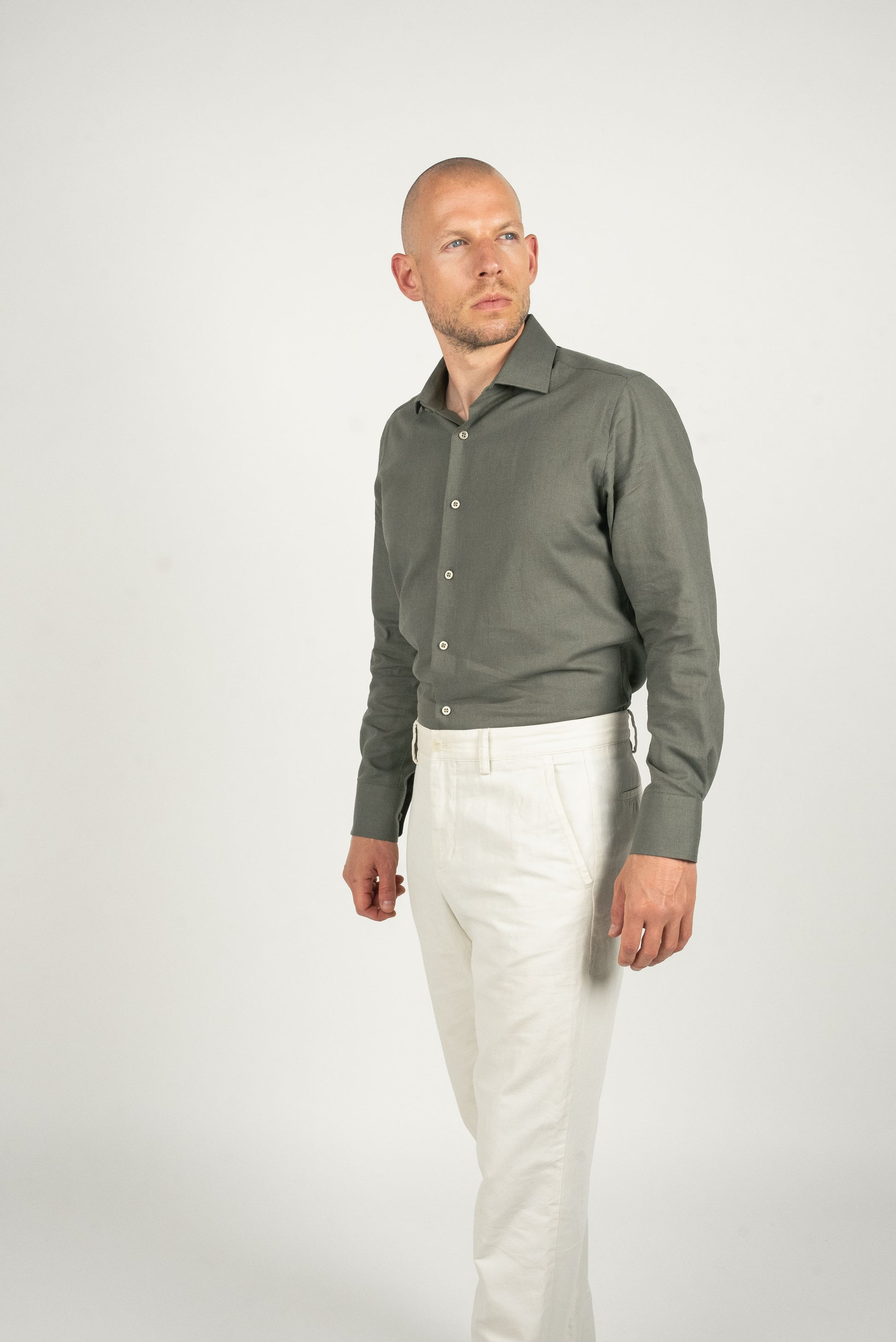 Olivengrøn hørskjorte er dit go-to valg, når du vil skille dig ud med stil og naturlig selvsikkerhed.