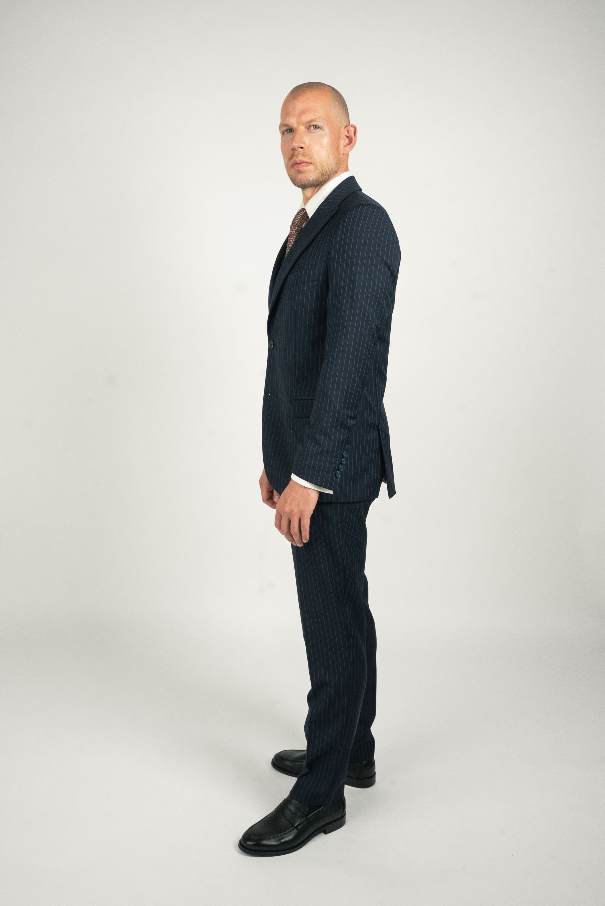 Klæd dig som en god gammeldags britisk gentleman, men i en sofistikeret og moderne udgave med masser af karakter. Reno Charade er en af vores fineste metervarer i en mørkeblå base med lyse striber.