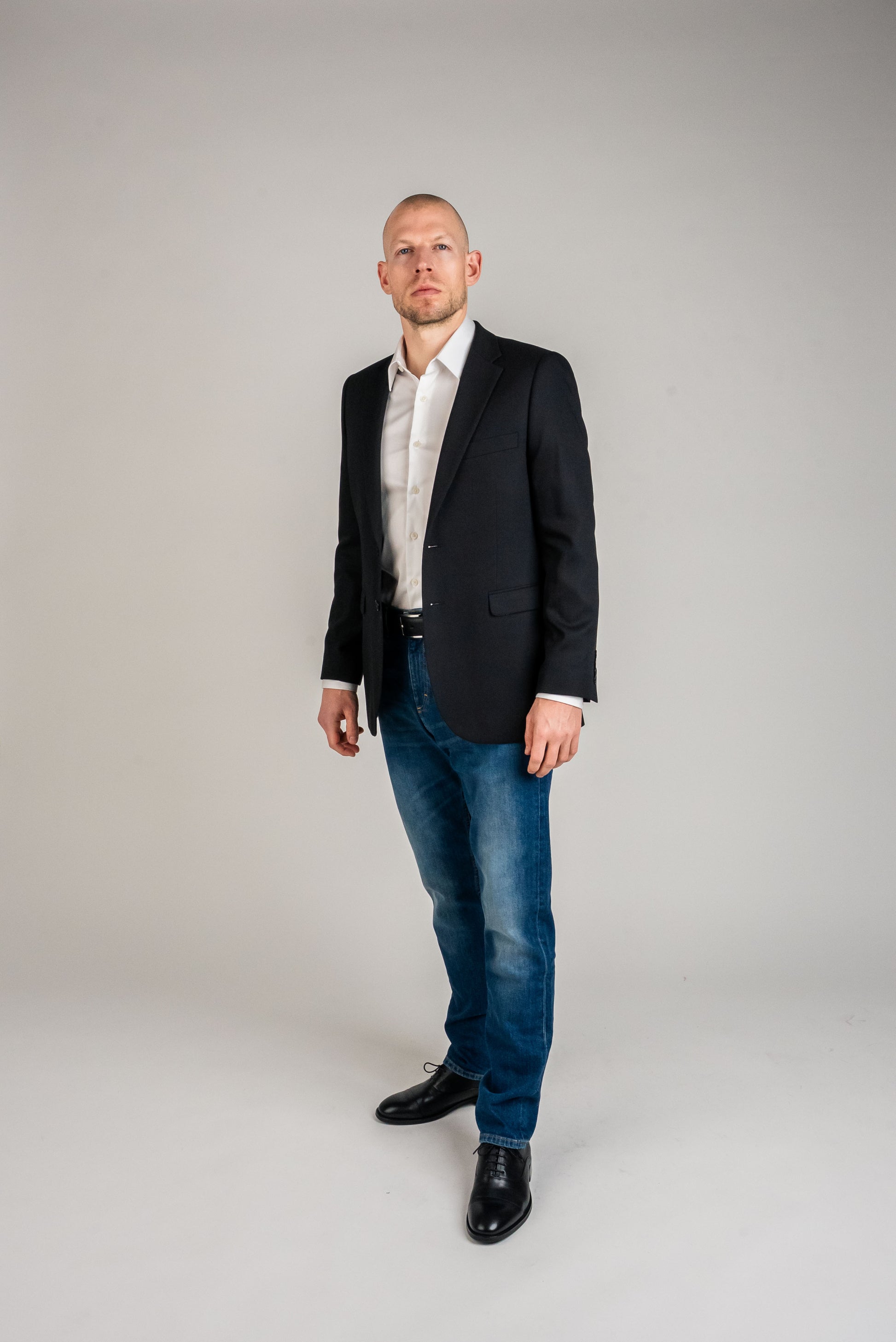 Ønsker du et ekstra stilrent udtryk, kan du tilføje en matchende vest og bære det som et three piece-sæt. En hvid skjorte er det oplagte valg til en tidløs og skarp kontrast, mens et sort slips eller en butterfly fuldender det klassiske look. Vil du skabe mere spil i outfittet, kan du eksperimentere med teksturer eller subtile mønstre i tilbehøret.