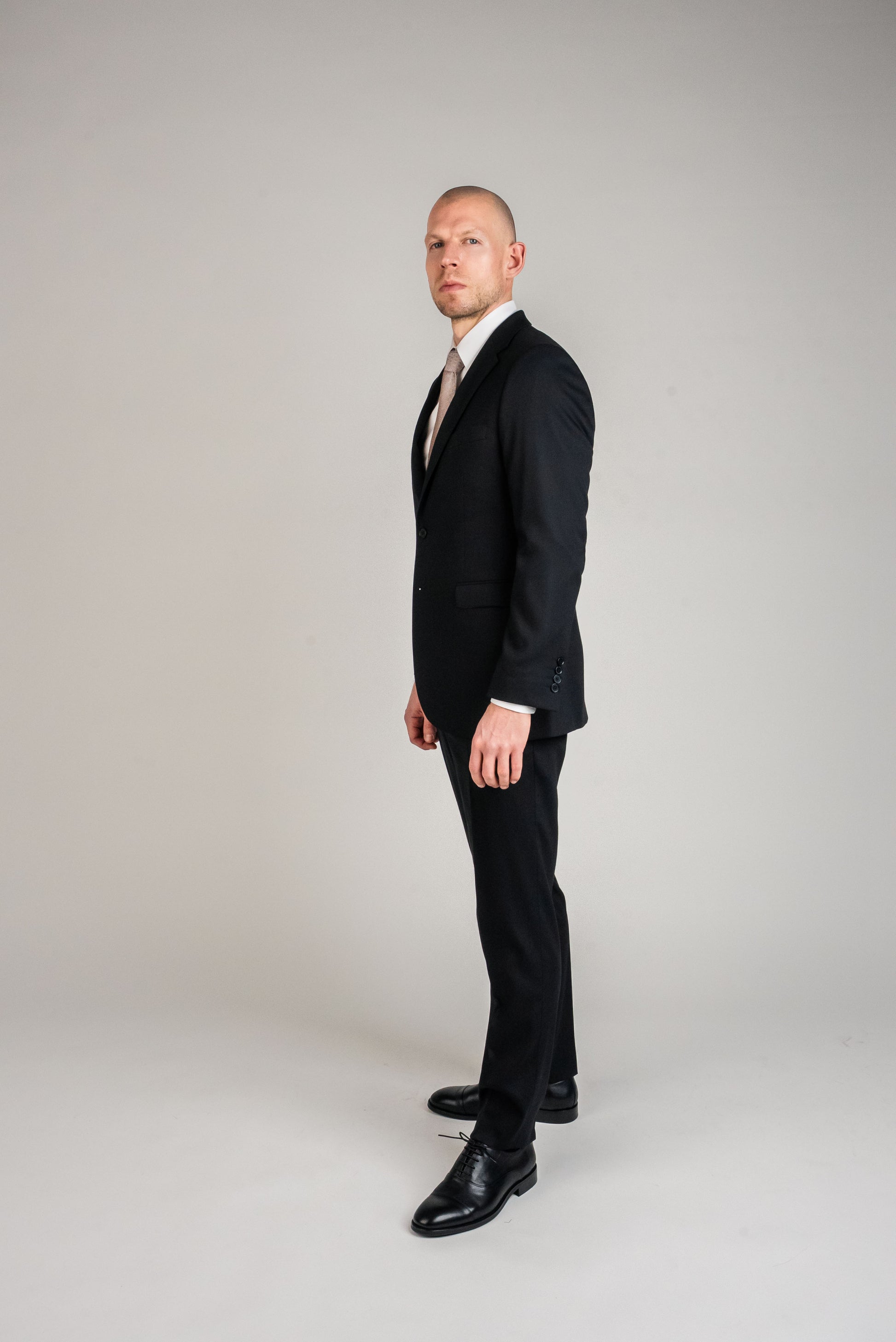 Et sort jakkesæt som dette er selve definitionen på klassisk elegance. Den dybsorte nuance udstråler eksklusivitet og er et sikkert valg til enhver garderobe. Det passer perfekt til alle mænd – uanset kropstype – og kan styles, så det enten oser af formel finesse eller får et moderne, afslappet twist.