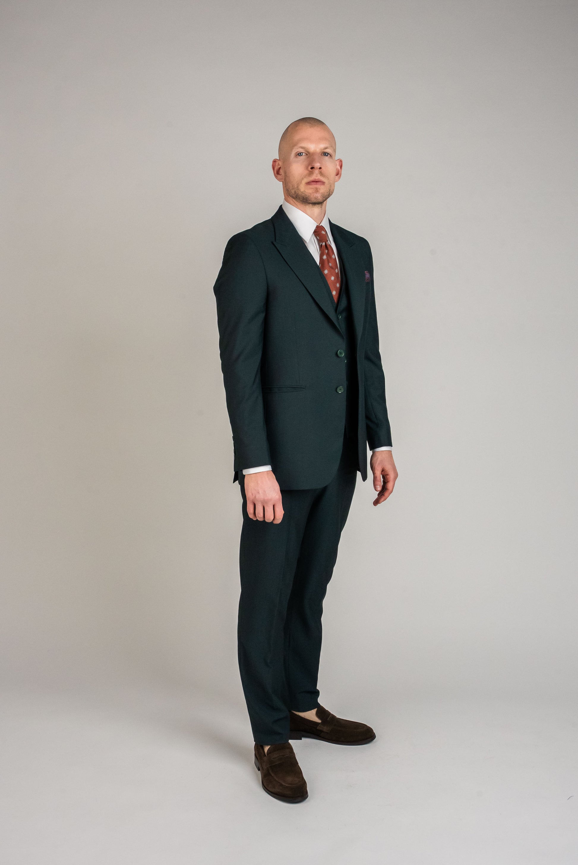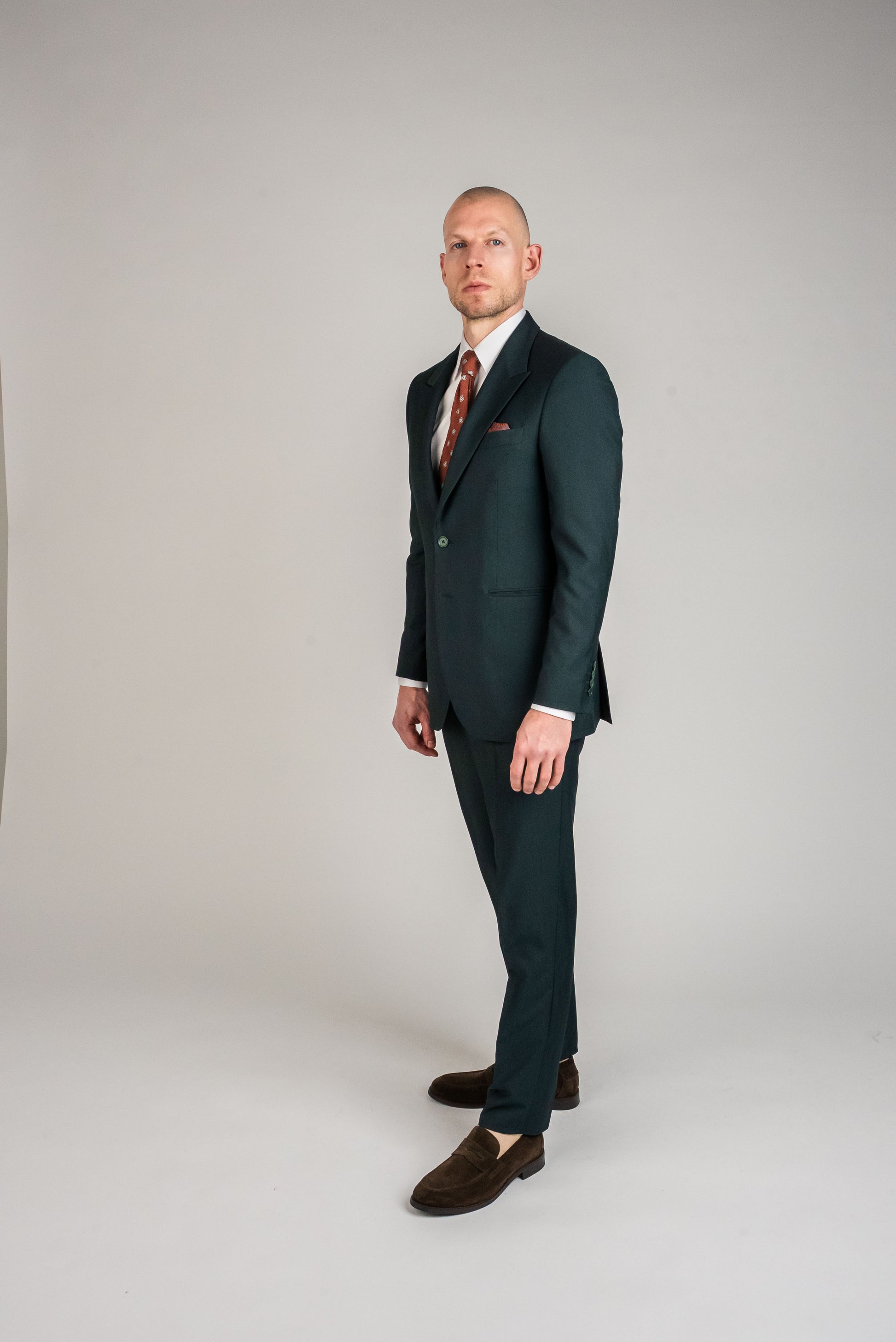 Med Tormes Paynes' Grey får du et elegant grønt jakkesæt, der skiller sig ud fra de traditionelle sorte og navyblå nuancer, men stadig udstråler tidløs klasse. Den dybgrønne farve er sofistikeret og alsidig, og den fungerer både til formelle anledninger og afslappede sammenhænge.