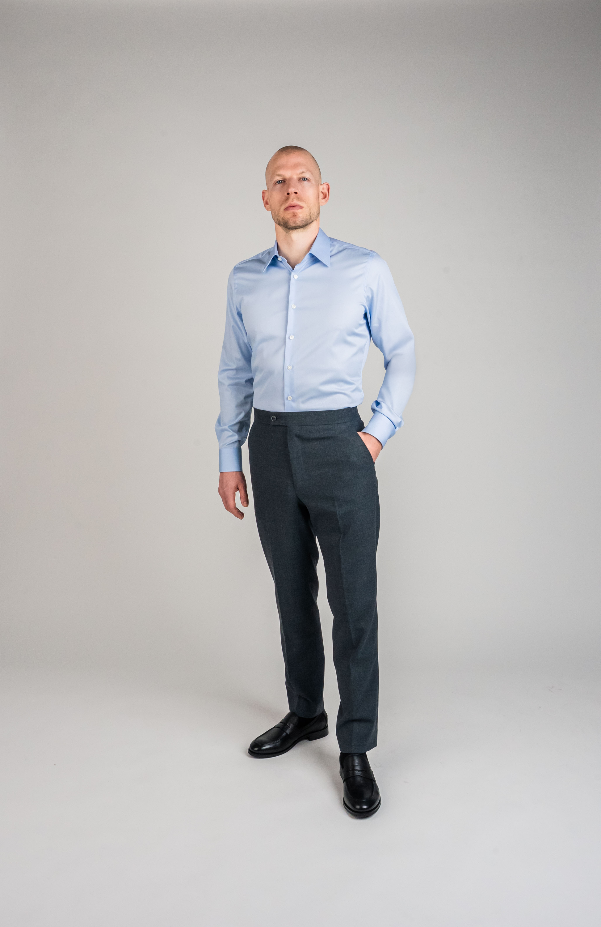 Elegance er nøgleordet for denne skjorte – det gælder lige fra farve til tekstur. Den lyseblå farve er et sikkert valg for dig, der ønsker en neutral nuance, men som alligevel vil have lidt farve på din skjorte uden at stikke ud.